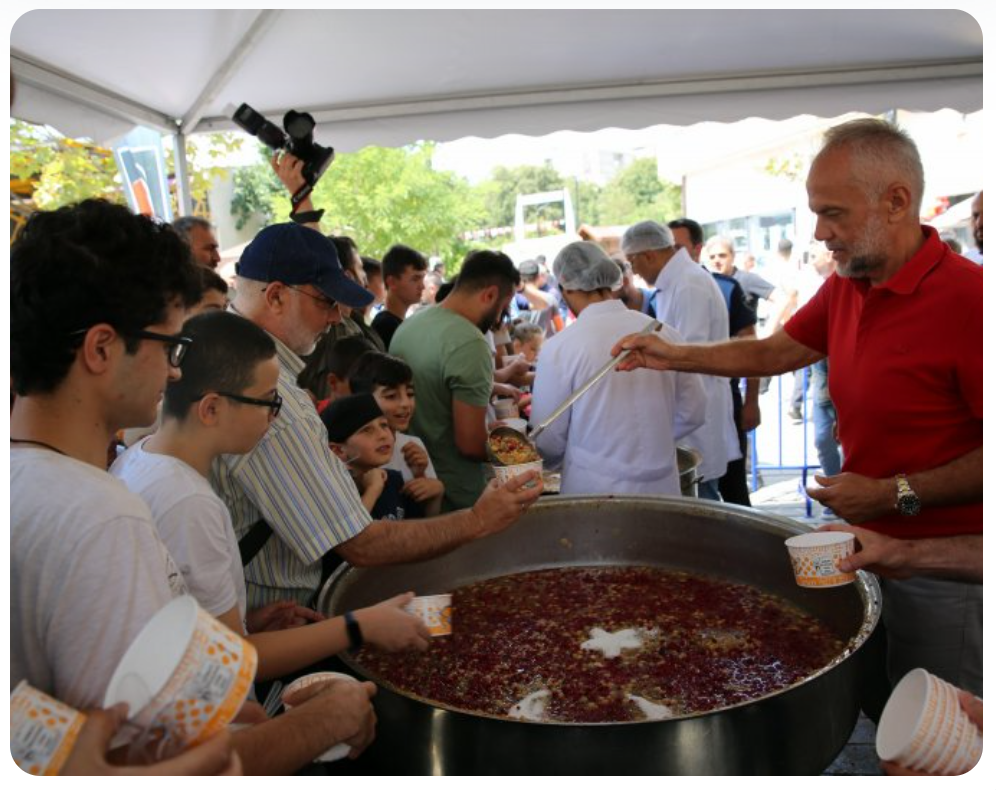 Başkan Poyraz “Birçok malzemenin buluşmasıyla ortaya çıkan aşurenin bizim farklılıklarımızı temsil ettiğine inanıyorum. Allah birlik ve beraberliğimizi bozmasın. Bütün şehitlerimizi ve ehlibeytimizi saygı ve rahmetle anıyorum. Rabbim hepsinden razı olsun. Aşurelerin yapımında ve size ulaştırılmasında emeği geçen kıymetli mesai arkadaşlarıma teşekkür ediyorum,” dedi.