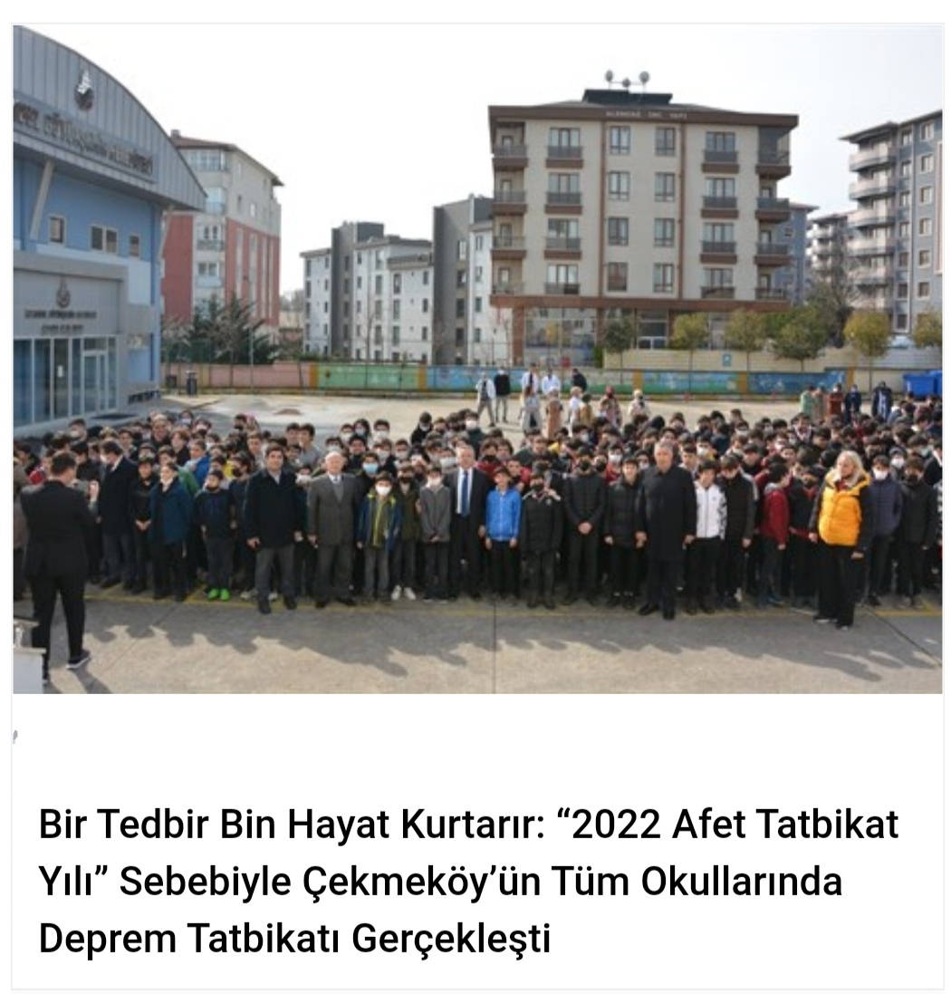 Bir Tedbir Bin Hayat Kurtarır: “2022 Afet Tatbikat Yılı” Sebebiyle Çekmeköy’ün Tüm Okullarında Deprem Tatbikatı Gerçekleşti...
